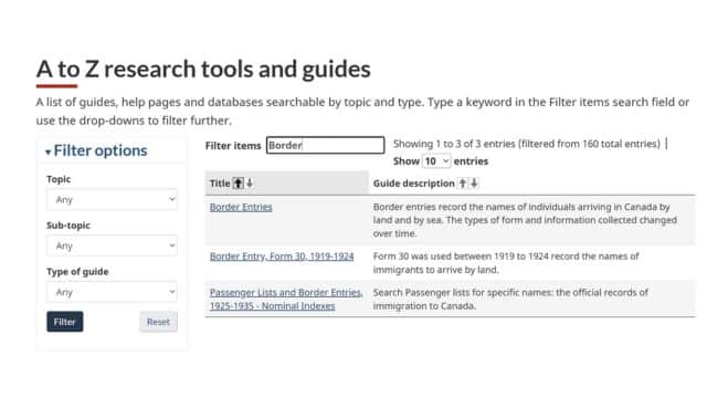 For the Library and Archives Canada site, note that prior to April 1908, people were free to move back and forth across the Canadian and U.S. border with no records for these movements in Library and Archives Canada collections. The Library and Archives Canada website is undergoing a gradual transition to pages that are updated so check back periodically.