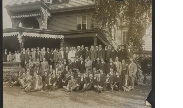 On Sept. 5, 1908, President Theodore Roosevelt hosted members of the US Olympic team at his Sagamore Hill home in Oyster Bay, Long Island. On his left is sportswriter P.J. Conway and on his right is James Sullivan, secretary of the 1908 Olympic Committee. This is just one of the images available at the Library of Congress.
